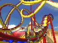Most, if not all, of the rides in Thrillville can be ridden with multi-camera views available to enhance the experience. When you are not on the rides, you will most likely be building them. The process of building new attractions is simplified and quickly mastered. Simply select the attraction in the build menu and move and rotate the ghosted footprint of the attraction within the available ride space, and when everything fits, just select "O.K."