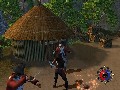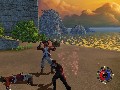When you board an enemy ship or go onto land, you will control your character from a third-person perspective. You'll fight with sword and fist and have access to a number of items to aid you in combat, but this is where the gameplay really starts to fall apart. The enemies rush blindly toward you and attack, and your defensive strategy consists of hitting the left mouse button repeatedly, which causes your character to execute a basic sword-slashing combo. There are a few other special moves you learn, such as a chest kick and a sweeping sword combo, but if you just repeat the sword-slash combo on every enemy, you can clear through entire levels with ease. If you are fighting a single non-boss enemy, he has no chance of hurting you at all, since you can attack so quickly that he will always be too stunned to retaliate. You're only facing a real threat when fighting three or more enemies at the same time. It comes down to a battle of attrition though, and after you fight enough enemies, you must down a healing potion to keep going.