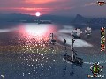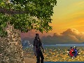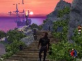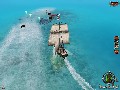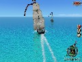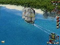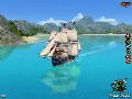 The visuals look quite nice during the title's sailing segments. The ships are finely detailed, and as you are sailing, you can see everything from the individual cannons and crew members to the ropes and bulges in the sails from the wind. Some of the land features are a little less detailed, especially the trees and rocks, which come across as quite bland. The reflection of light off the water looks especially nice, and the sunsets are picturesque in detail. Another neat effect is the translucency of the water at different depths. You can see the sand at the bottom in shallow end, and as you move farther out into deeper waters, it becomes murkier. It doesn't appear quite as good when you are on land or aboard another ship in control of your character, but the models and textures still look pretty good.