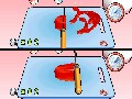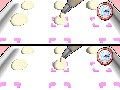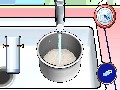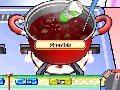 All of this ingredient mixing and manipulation is handled by Wiimote-gesture mini-games. You'll mimic real, intense chopping action by moving the Wiimote up and down, or stir concoctions with real and powerful circular stirring motions. Pouring, mashing, cutting, opening cans — it's all here, and the motions are all what you would expect them to be if you were to use your imagination. Cooking to perfection or baking to a golden brown is handled via watching a meter, and making the appropriate motions within said meter to make sure food doesn't burn on your watch.