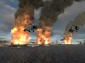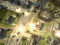 This would all be for naught if the game had a shaky visual foundation, but such is luckily not the case with World in Conflict. By and large, the game sports about as much detail as top shooters on the market, as the 3D camera eliminates many of the visual compromises that can be made in RTS games with a fixed perspective. Most impressive are the Tactical Aid attacks, many of which lay to waste the fully destructible environments in the game. Upon launching a Tactical Nuke, the blast wave takes down all nearby cars, houses, and trees within a considerable radius. All of this is also visible from the mega-map, which uses the same in-game rendering to provide a comprehensive view from 10,000 feet above the battlefield.