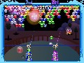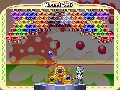 Bust-a-Move Bash! also has several power-up balls which make the gameplay even easier. These balls range from bomb bubbles, which destroy bubbles within a blast radius, to star bubbles, which destroy all bubbles of the same color as the one on which it lands. You can store one of these bubbles or a normal-colored bubble in the cannon's secondary slot; the power-ups are really nice to have in clutch situations.
