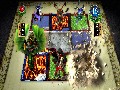 The PlayStation Eye USB camera makes all of this possible, as it reads electronic codes imprinted on the cards to trigger an in-game version of the character, spell, or action on the playing mat. The Eye is suspended by a supplied plastic stand over a 3x3 grid, and the ultimate goal of each player is to control five of the nine fields on the grid. Taking control of a square requires the placement of a character card, but maintaining control can be a tricky endeavor. As players attack, counterattack, and cast spells during their respective turns, keeping several characters afloat in the midst of the madness can be rather challenging.