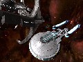 It's a shame that the primitive repair system actually inhibits your focus on battles as a whole, because they're otherwise very, very fun. Piloting million-ton battleships like the Enterprise-D takes a bit of patience (it's not like flying an agile X-Wing, believe me), but once you learn your aft from your starboard, you'll be firing photon torpedoes with ease. Space station raids comprise many of the missions, with other types ranging from escort, to ship retrieval, to attack-and-defend. Legacy deserves praise for not doing the same thing again and again, but along with the mission variety comes some substantial difficulty, significantly due to the aforementioned control template. Even if most ships can be dispatched by firing phasers while performing a loop to bring yourself about, and then unleashing a few photons on 'em, it's a inconsistently satisfying process with the right amount of tension that would've been made better with more intuitive interfacing.