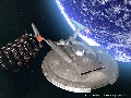 But with Bethesda, a company that understands how to handle games with immense scale, captaining its publishing, many Trekkies were confident that Star Trek: Legacy could carry the franchise to new territory. Indeed, when the folks from Maryland gave me a look at the game at E3, I was nearly sold on the premise alone: the opportunity to command dozens of Federation vessels from every era of Trek, along with those of the Klingons, Borg, and Romulans. It was the first Trek game to sport next-gen graphics. Add in four-player multiplayer over Xbox Live, and voice acting from Archer, Picard, Janeway, Sisko, and Kirk to add credibility, and everything seemed locked-on for a bona fide Trek game that fans could rally around.