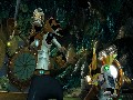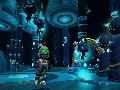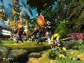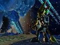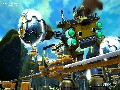 By contrast, the romp around Sargasso shifts things to a much warmer climate, presenting a rocky, prehistoric playground that sported a bit of lush greenery. However, Sargasso is not meant to be explored solely from a bipedal perspective, as the pair can now take to the sky via the Robo-Wings, which sprout from Clank (mounted on Ratchet's back) via one of the many launching pads found on the surface. As with the Geo-Laser, the Robo-Wings are controlled entirely via the SixAxis motion controls, though such responsibilities can be shifted to the analog sticks for balance-deficient gamers. We scoped a Pilotwings-style challenge in which the pair had to follow a mythical species of flying robots through a series of floating rings.