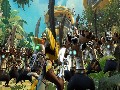 Much of the early action in Sargasso was centered on the elimination of Leviathans, massive beasts that resemble the ancient Tyrannosaurus Rex (albeit with massive horns), but are just as susceptible to the whims of the Groovinator as any other creature. Collecting a trio of Leviathan Souls allowed Ratchet to obtain a Decryptor from a local smuggler. Later in the stage, we caught our first glimpse at the Gelanator, a gadget that fires massive blocks of gelatin for Ratchet to launch off of. Three shots can be layered atop each other to create a massive cube of green goo that gives Ratchet an impressive vertical leap. The Gelanator is something of a context-sensitive device, as fill-up stations seem to be positioned right near where the device could best be utilized.