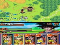 The battle system is actually pretty neat. If you play your cards right (badum-pssh!), your opponent will never get a chance to attack you. At the start of the battle, both you and your opponent select a card. Unlike on the movement board, only the attack number of each card is matched up in battle. The owner of the higher numbered card gets to attack, while the other person is forced to defend. The defense number of the defending player's card comes into play here; basically, a card's attack stat decides the number of times a character hits another character. Therefore, it doesn't determine the damage done — the stats of the actual character do. The defense number of a card mitigates some of that damage by blocking a number of hits. Even if it blocks all of them, some damage will still get through.