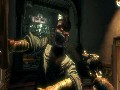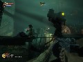 While BioShock boasts some unusual and interesting enemies, by far the most common enemy encounter will be with the "splicers," which are basically your standard zombies. As the story goes, the splicers are genetically mutated humans who are exhibiting signs of having consumed a little too much Adam, the material enabling the genetic modifications. While I would have enjoyed more variety among Rapture's evil denizens, at least the splicers come in several different flavors. Some toss grenades at you, others walk on the ceiling (yes, it is most disconcerting to come across this particular breed), and others are like ghosts and disappear and reappear for maximum "Boo!" effect.