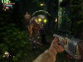 The action is fast-paced, though not too fast to enjoy the scenery, which is a good thing, because the scenery in Rapture is the highlight of the game. Rapture is beautifully created in a colorful art-deco-inspired style. Water is everywhere as you would expect in an underwater city, and it has never looked better. The scenery is varied and fascinating, which is a remarkable accomplishment in a genre that tends to favor drab corridors and repetitive levels. You'll enter lush gardens, spooky graveyards, colorful street markets, and dark tunnels. The only consistency in your surroundings is that water is dripping nearby and everything looks great on your monitor.