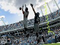 Now that some of the basics have been covered, it's only right to begin talking about the gridiron battle that occurs on the field. Madden 08 totes the best graphics ever to been seen in the franchise, and they're finally beginning to stand up to the level of what EA was trying to go for years ago. Right off the bat, You'll notice the new animations and visuals in the team introductions and even the first kickoff. Players will also enjoy the fact that your receivers can actually catch sideline passes and stay in bounds. EA incorporated new branching animations with the help of the technology that was used in the development of NBA Street Homecourt, and it makes a world of difference in gameplay and visuals.