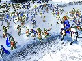 The styling and textural depth of the graphics in Empire Earth III are reminiscent of Warcraft II. Although you'll never get confused as to which units and buildings are yours in Empire Earth III, the simplified color and texturing means the game always looks at least a decade old. The only visual elements that seem to have been updated are the environmental and special effects for fire, smoke, snow and water. The unit animations are a bit lackluster and are further cheapened by ridiculous visual flaws, such as when units in motion simply slide stationary units aside instead of finding a path around them. After you've selected units, some of the selection rings that appear seem excessively thick.