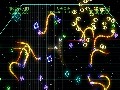 Features from the original Geometry Wars, such as the bombs to clear the map when you're surrounded, are still present, although Galaxies boasts a few new additions. Collecting the yellow shapes from destroyed enemies earns you geoms, which can trade for power-ups or to unlock new and more challenging levels. Levels are split up into solar systems, with each planet representing a different level, with the later, more difficult systems costing more to unlock. Power-ups include stationary turrets that fire in every direction, attack and defense bonuses, bait to lure enemies away and a geom magnet to help you collect more.