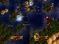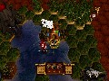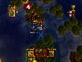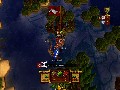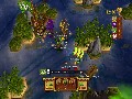 Villages are rather like mini-towns. You capture them in the same way, by parking next to them and wearing down their armor. However, unlike towns, destroying a village's defenses doesn't capture them, but instead destroys them, giving you a one-time resource bonus. Merchant ships are a bit more interesting. Fast and lightly defended, they scamper around the map, looking for ports to dock. However, if you park next to one, you'll attack it like any enemy pirate ship. Sink it, and it'll drop a crate. Unlike enemy pirate ships, however, these crates don't contain resources, but rather a different kind of booty: curses.