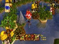 Your primary goal in Age of Booty is to capture the various neutral parties on the map. There are three kinds of non-pirate targets for you to plunder: merchants, towns and villages. Towns are your primary focus, and to win the game, you'll need to capture a certain number of towns. Large and heavily defended, towns are stationary, but that doesn't mean they can't fight back. Park your ship next to a town, and you'll begin exchanging fire with it. Much like fighting enemy ships, towns have an armor meter that wears down as you fight them. If you take out the defenses, you'll be able to start capturing the town by sitting next to it until the Capture bar fills up. You may be a sitting duck for enemy pirates, but you can't run away when victory is so close. Once the capture bar is filled up, the town is yours. It will give you resources, and you can park your ship there to repair it while you help defend the town against enemy pirates. Capture enough towns, and victory is yours.