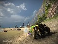 Going along with the element theme of each available race circuit, Motorstorm's boost feature returns in Pacific Rift, and the functionality remains mostly the same. A few seconds into a race, your boost is unlocked, and you can use it as much as you want, as long as you don't max out the meter at the bottom of the screen. If you do, you'll actually explode and be treated as if you just crashed ? which you pretty much did. However, certain things on the track can also affect how well your boost works, such as volcano areas that will overheat your boost faster, or water sections that can cool off your boost or slow down its regeneration. Certain tracks will even make use of both elements, and there's a bit of strategy in realizing when to use it and when to lay off, so as not to cause untimely destruction. You'll need to be aware of others around you; if you're too close to someone who's about to explode, he can also take you out, and vice versa. This doesn't occur very often, but it can pop up when you least expect it.