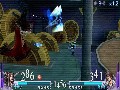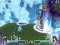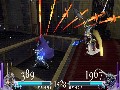 In addition to regular Brave and HP attacks, you also have "rush" Brave and HP attacks. When hitting an opponent with certain attacks, you can send him flying. Doing so prompts you to press the X button to rush after him, which activates a mini-game where players take turns attacking each other with either HP or Brave Attacks. The defending character has to try to time his dodge to avoid the attack, with Brave Attacks being easier to avoid. If one player hits the other with a Brave Attack, the hurt player is sent flying, and the aggressor can choose to continue the Rush or return to regular combat. An HP attack works just like a regular HP attack, draining all your Brave and doing matching damage to the opponent. A Rush attack continues until either one of the fighters hits the wall at the edge of the arena, lands an HP attack, or chooses not to follow up a rush.