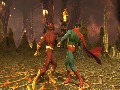 The actual arenas have some neat things going for it, and while it's not exactly fresh to have an arena that can be breakable and reveal a new floor beneath it, the way MK vs. DCU makes use of this mechanic is pretty fun. Basically, if you're breaking through in a vertical sense, you'll enter a mini-game of timed button presses during your fall. Your opponent can try to tap the same buttons, which allows him to counter the attack and yields some interesting results, depending on your reflexes. A few stages allow you to break walls on the horizontal plane, which brings up a slightly different mini-game where you button-mash against each other in an attempt to fill up a meter at the top of the screen. Whoever dominates the meter will cause a certain amount of damage once you make it to the new section of the arena. The locations in which you play seem to be taken mostly from the DC side of things, but they're altered a bit to keep in line with a MK aesthetic, since the two universes are supposed to be merging.