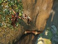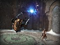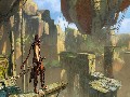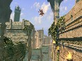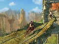 Platforming in Prince of Persia is somewhere between the older games and Ubisoft's Assassin's Creed. Movement is simple and easy. The face buttons are bound to the various moves you can do. The A button controls jumping moves, B is for gauntlet moves, and Y controls Elika's moves. Simply press the button at the right point, and you'll perform the right move. For example, press A while running forward and you'll jump. Press it and the analog stick toward a straight surface, and you'll wall-run. Press it while hanging, and you'll leap onto a nearby object. It sounds a bit simple, but it works quite well, and chaining together your various abilities is a breeze. Once you've got the hang of the controls, you can perform extremely long and fast strings of acrobatics, which allows you to zoom across the ruined kingdom with shocking speed. Perhaps the only real problem is for veterans of Sands of Time. I kept trying to use familiar movements from the last games in this one, all of which have changed just enough to lead to me leaping off a cliff. Once I got the hang of these new controls, though, those problems vanished pretty quickly. It's really easy to pick up, and even younger gamers could probably learn the tricks within a few hours.