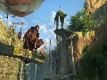 Prince of Persia is a really lovely game. For the majority of it, the world will consist of shades of black and gray because Ahriman's corruption is draining all the life and color from the world, leaving your characters as the only bright spots. Once you heal the corrupted ground, color floods back to the world, turning the depressing and bland world into a more colorful version of itself. The prince and Elika's animations are smooth and exceptionally fluid, although there are a few nasty visual glitches involved whenever you have to push one of the game's annoying twin-lever mechanisms; Elika will often not hit the right "trigger" and end up teleporting, twitching in place or overlapping with the prince. The music is solid and atmospheric, with excellent voice acting from the prince and Elika serving to improve their rather strong chemistry.