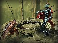As in the rest of the franchise, the combat is easily the weakest element of the new Prince of Persia game. All of the fights in the game are two-on-one fights, with Elika and the protagonist fighting a single foe. Taking down your foes is pretty simple. Each of the controller's face buttons is bound to one of the main character's attacks: sword, acrobatic, gauntlet or Elika. Press the button and you attack, and you can chain these attacks into combos that do a ton of damage, with up to 15 hits possible from one combo. A 15-hit combo is usually enough to take down any enemy in the game, or at least weaken them substantially, and most combat revolves around weakening the foe to the point where you can get one or two good combos off. While it is visually interesting the first couple of times, it quickly grows boring, since you never learn any new moves or abilities, and most of the enemies can be defeated in the exact same way. As the game progresses, enemies gain special defenses, which are glowing auras that can only be broken with a specific kind of attack, but they don't do much other than require you to use a slightly different combo.