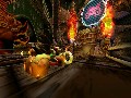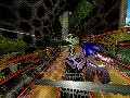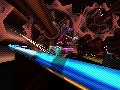 The actual gameplay of Zero Gravity starts with a modified version of your basic racing game rules. One course, three laps, lots of alternate routes, and you don't even have to hold down a button to accelerate; you simply steer with the analog stick, brake with one button and, at certain points, activate tricks with another. You won't want to brake very often, though, with the first of the game's three defining tricks. Remember how that meteor lets you control gravity? Tap a shoulder button, and you'll go into a null-gravity state, which allows you to aim yourself down a new path fairly quickly, to the point of it being the preferred method of turning on a sharp corner or reaching advantageous shortcuts. You're also able to use the same effect to basically point gravity forward, sending you flying down the course and ramming into varied objects, which is rewarded Burnout-style with more time on the gravity gauge, a successful replacement of the air gauge.