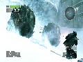 You can find a variety of vehicles, most of which are various Vital Suits, which makes a lot of the game's control quirks make more sense. Lost Planet is a mech game at heart, but it leaves you on foot most of the time. Wayne can weather an enormous amount of punishment as long as he's getting a constant drip-feed of thermal energy, and the mechs he drives are much the same way. Thus, you might want to play the game like any other shooter, where you circle-strafe and use mobility as your greatest weapon, but Lost Planet actually rewards you for bulldogging through encounters, blowing up everything you see and moving as fast as you can with no regard for your own safety. It's an interesting approach to gameplay, but it's utterly counterintuitive for anyone who's played a shooter before.
