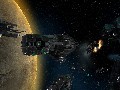 Visually, you won't find anything in Sins of a Solar Empire that you haven't already seen before. This is not to say the graphics are disappointing because all of the visual elements are attractive and well presented. The user interface is surprisingly intuitive, and just about all game screens can be accessed within two clicks of the mouse (or even quicker if you use keyboard shortcuts). Since the game is played in real time, you also get to enjoy watching 3-D animated combat, although the space engagements seem a bit tactically impaired and drawn out. The mouse-controlled camera system, complete with lens flares, is exceptional, and camera movement is possible in all directions. Quick and smooth zooms, which range from individual planet orbits to entire galaxy views, make expansion and management of colonies much less tedious. The numerous sound effects are pleasing and not too distracting. In my opinion, the hammy in-game voice acting, which provides voice reports, is a bit over-the-top.
