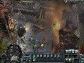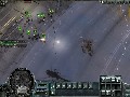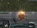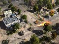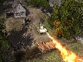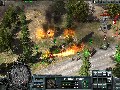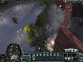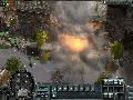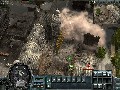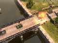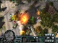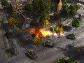 Panzers: Cold War delivers solid visuals despite its status as a preview build. Explosion effects are gorgeous, thanks to the bright and billowing fireballs and the momentary distortion effect caused by the shockwave as it ripples out from a particularly large blast. The units themselves are well-detailed in and of themselves, but the level of detail is mostly in the graphics effects, such as when buildings collapse under gunfire or when units rappelling from a helicopter are viewed via their reflections in a pool of water on the ground. The game often makes use of instances that really show off these effects, such as a helicopter that is scripted to crash into a building or of a crane that topples into the housing below.