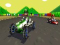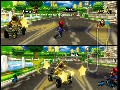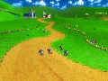 So aside from the wheel, what else is new? Regrettably, not a whole lot. Apart from motorcycles and courses, things are pretty much the same way as you left them the last time you fired up a Mario Kart game. The motorcycles are only mildly interesting, as they do little more than offer a slightly faster vehicle with an additional method of boosting. It would have been nice if the bikes handled and accelerated in a manner completely different from the karts, but really, it just feels like they chopped a kart in half and stuck a seat on it. There are also 16 "new" courses, but very few of them are actually original. Most are simple retreads of series favorites, like "raceway named after a Mario brother," "off-road dirt course with dangerous falls," and of course, yet another Bowser's Castle. Even though this game features what is likely the most dangerous and challenging Rainbow Road course yet, it's still just another Rainbow Road course.