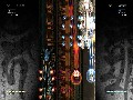 Fortunately, you have two "secret" weapons that make things much easier. Your ship comes in two colors (sort of), and a button switches you between a white-blue color scheme and a black-red color scheme. The most significant part of this is that you get a shield matched to your current color, which will absorb all bullets of that color. Naturally, barrages of bullets usually involve both colors, but determining which color you don't have to worry about evading is very useful indeed, even if you can (theoretically) evade your way through everything. On top of that, absorbed bullets add up to a "charge" gauge, which can be fired off at any time as high-power homing lasers. Furthermore, your bullets will deal double damage to enemies of the opposite color as you, thus encouraging you to take the rather immense risk of being the opposite color to rapidly bust through barrages.