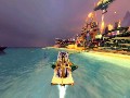 The audio is similarly manic. Engine and sliding noises are distinct but relatively quiet when compared to the campy yet well-acted vocals ("Nitro is in your slipstream!") and pulse-pounding original techno soundtrack, although I must admit I was reminded of Sonic Riders: Zero Gravity and Jet Grind Radio more than once. The soundtrack even shifts to match certain changes (i.e., when players enter Zone status), which is a nice and unexpected touch.