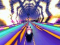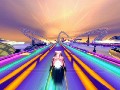 Landing attacks, combined with simply moving fast and avoiding hitting the sides, will quickly reward you with boosts, which will raise your speed by about 30 miles an hour (one-tenth of your common speed once you get to around the game's halfway mark) for about five seconds. You can accumulate and stack these boosts, or you can stack them with other speed boosters that can be found on the track. Crazier still, four boosts at once (the maximum that you can carry) will warp your screen into the psychedelic "Zone" status. This means that you move at a full 400 mph, become essentially invincible, get automated assistance in maintaining a solid line through the course, and get a strangely awesome music and graphical shift. And you'll come out with at least one more boost to fire immediately on top!