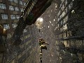 The demo for Bionic Commando was partially hands-on: for a time, I was given a controller and allowed to run around in a level called the "Swingers' Club," set to be one of the maps for Bionic Commando's announced 10-man multiplayer mode. (No, the demo didn't cover much more multiplayer info, but what we have comes up later.) The idea of the Swinger's Club tutorial was just to get used to the reality of platforming with the bionic grapple ... though "platforming" isn't really the right word. The amazing, freeing thing about Bionic Commando is that your bionic arm gives you near-total mastery of three-dimensional space. You can use your arm to pull yourself up to anything you can stand on, you can use it to climb up steep walls and then swing across the ceiling, and you can use swing-jumps to clear wide gaps in Tarzan style.