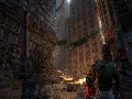 The first level shown off in the hands-off part of the demo was a bombed-out section of Ascension City, since flooded extensively with water. Nathan had to progress through the level by using his bionic arm to essentially swing from one skeletal skyscraper's remnant to another, and occasionally had to cling to incredibly narrow little catwalks while making his way around. The game's HUD is blessedly minimal, allowing you to appreciate the sheer beauty of the surreal landscapes around you. One of the more interesting things the HUD tracks is the adrenaline meter, a series of orange hexes at the lower right corner of the screen. This mechanic is intended as an equalizer, both in multiplayer and solo play.