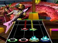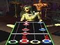 In order to facilitate the frantic button-mashing that is the cornerstone of the Guitar Hero franchise, Vicarious Visions has sculpted an interesting peripheral that slides into the GBA cartridge slot on the front of most DS units. This is what you use to press down on the frets, and you use the touch-sensitive pad to strum. On Tour displays whichever guitar you've selected, and using the pick-shaped stylus that comes with the game, you strum along. The whammy bar is similarly maneuvered using the pick, and overall, the entire effect is surprisingly smooth and intuitive.