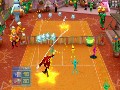 Few games (the aforementioned Super Smash Bros. included) manage to sell themselves so well simply due to the fact that they're packed with fan service. Mind you, all the perfectly placed fan service in the world is meaningless without a good game engine to back it up. Fortunately, SST follows a formula so simple it's a wonder it wasn't used before: Take the game engine for Sega's own Virtua Tennis 3 — arguably the best-playing tennis game on the current market — and slap Sega franchises over it. Voila, instant fun. The roster consists of about 60 percent Sonic characters, with the rest hailing from Jet Set Radio, NiGHTS, Samba de Amigo, Space Channel 5, Super Monkey Ball and even golden oldies like Alex Kidd and Golden Axe. Different stages from even more Sega games, like After Burner and OutRun, are tossed into the mix just before the blender's activated.
