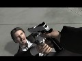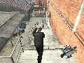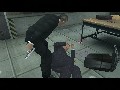 When you encounter armed characters, such as security guards or cops, it becomes a bit trickier. You'll need to take a hostage and then threaten to shoot that hostage in an attempt to subdue everyone who's aiming at you. With security guards, this is pretty simple; they'll instantly drop their weapons, at which you point you can target them with the left trigger and force them to walk away, lie on the ground, or put their faces up against a wall to take them out of play. With the cops and SWAT members, however, you need to be a bit more coercive and rough up your captive a bit, either by butting him with the gun or slamming him into nearby objects. Once you've properly scared the police into not acting against you, you'll typically have a shot at the objective you're trying to achieve.