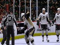 The second new thing is a "brand new fighting engine," which is better than the Zamboni mini-game but still doesn't do much to capture fighting in the NHL. When a fight kicks in, the skaters will circle each other for about 10 seconds before they grab each other's jerseys and throw down. You get two punch buttons, and the triggers control your balance. As you hit the other player, you can get hit. Once out of that region for a few seconds (or there's no area left for your balance meter), you fall to the ground. In every single fight I had, both on-and offline, I didn't lose once. I also never really felt like I was in a fight, as it felt more like a button-masher on a balance beam.