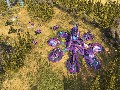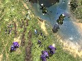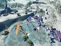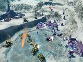 The Covenant, on the other hand, gets by on superior manpower instead of technology. That may seem a bit odd, considering their habit of using advanced plasma weapons and personal shield technology, but human technology may be less flashy but is more effective. The Covenant base unit cap is higher, so they can deploy more units on the field at once, but its units are a bit weaker, so you need those extra units to make up the difference. Covenant mecha also have greater access to energy shields, which in turn allows them to sustain a bit more damage as long as their shields are up. The end result is that the Covenant is a more defensive race. They also can't build up technology as quickly as the humans, as they're limited to only a single temple instead of multiple reactors.