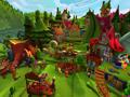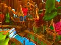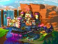 Each level in the game tasks your forgotten heroes with traveling through some part of the fairy tale world in an attempt to do good deeds and earn tons of cash, which is the most important thing in the game. You need to earn as much as possible in order to build statues to remind the townsfolk of your deeds. You can also use it to occasionally make wishes at a wishing well in order to get new and better weapons. Cash isn't easy to come by, though. You have to beat up enemies or find treasure chests to fill your coffers, and you lose money every time you die. You have infinite lives in the game, but if you die too often, you'll find that you finish the stage without earning a single coin. It's an interesting balancing method, since players are encouraged to earn as much cash as possible. You can't permanently die, but getting careless can lose an entire stage's worth of profits. It doesn't matter if you jump into a spike trap, fall off a cliff or get clobbered by enemies; you'll still lose your valuable coins.