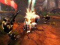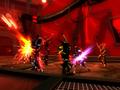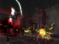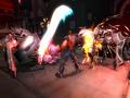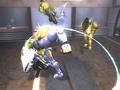 First, gameplay is always cooperative so no matter what, two Spyborgs will be in play. They may not always be on-screen, if one Spyborg is being controlled by the computer, which has some pretty competent AI. Having a duo is handy, but it also provides for the second major difference: the Devil May Cry-style combo system. As you deal damage, if you can keep it up rapidly, your combo will increase in grade and reward you with red sparks, the game's form of experience. There's only one combo counter for both players, so you can run ahead to the next group and start smashing them to generate a consistent stream of A-rank combos.