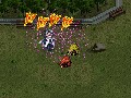 The covered timeline goes from past to present day over a 20-hour campaign. As you advance in the game, you'll increase your roster, which consists of about 180 possible characters. You can only take a small set with you into battle, but you can switch out characters in between and change up the roster depending on who you like. Leveling is easy enough; for every person that someone kills, he'll get a boost, and there are a lot of aspects that are comparable to Fire Emblem, right down to the "rock- paper- scissors" style of combat.