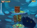 Gameplay is relatively straightforward. For reasons unknown to even the most creative scientist, the meteors are falling down flat platforms with holes in them: stars, triangles, squares, and additional shapes as the levels move forward. You can't move the meteors, which fall in a straight line, but you can move the platforms. Move the right pieces through the right holes enough times to fill the receptacles on the bottom of the screen, and you can proceed. It sounds pretty simple, and it is … at first. The real challenge comes when the game starts throwing you curveballs. What if the meteors fall in rapid bursts, and you have to turn the platforms quickly to catch them? What if they aren't meteors at all, but treasure chests with parts that you have to place in order? Suppose the platform flips every now and then, and if you time it incorrectly, your pieces simply bounce off? Some platforms are even covered with butterflies that will fly your pieces back up to a previous platform, forcing you to reverse your normal thinking to account for the difference in positioning. All the differences keep the player on his toes, and that's a real boon to puzzle titles, which often fall into lazy, easy patterns where only the speed increases.
