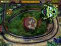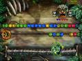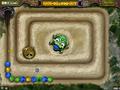 What's new to Zuma's Revenge to make it superior to the original? Aside from a few new power-ups and an array of new stages, the game also throws in a few special map types, which introduce new challenges. Some maps let the frog jump between two points, giving him two places to launch from (often two halves of a map, separated by walls), while others have you "sliding" rather than aiming, with the frog always pointing in one direction. The most significant of these are the game's boss battles. Bosses always have two lines of balls to guard them, and they'll try to hit you with attacks that will stun you for a few seconds. The priority is to clear gaps in the wall so you can strike the boss directly, since clearing the balls usually does nothing. It is these maps that can be the hardest of all because you have the fewest options here for creating the gaps that you need.
