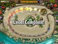 The premise of Zuma's Revenge has you playing as a frog who got himself washed up on a Polynesian island … on a raft that he built out of bamboo and a large pair of PopCap boxer shorts. The Polynesian island happens to be lorded over by several evil priestly types who have decided that frog legs sound like a delicious snack. Hence, our froggy hero is forced to run around and defeat all of them in order to escape the island.