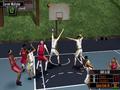 As necessitated by the PSP platform, the controls are a simplified version of the type you'd find on full-size console versions of basketball sims. There's only one analog stick, so it has to be reserved for player movement. Obviously, there's no way to implement any kind of shot-stick scheme, but The Inside does the next best thing, one-upping even some HD console titles when using face buttons to shoot. Your shot accuracy is based on how long you hold the Circle face button. There's a glowing aura around the ball as you shoot while holding down the button: Red when your chances are slim; most often yellow when it may swoosh or may rebound off the rim; and, rarely, green, when that ball is almost surely going in, chiefly at close-in layups and fast-break dunks. It's an imperfect shooting mechanism, but it certainly requires more skill and practice than a mere tap-and-shoot scheme.