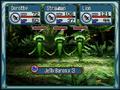The battles are usually against three or four enemies at a time, and combat is laid out in both familiar and unfamiliar RPG stereotypes. The game makes use of ratio values for each character, with characters like Dorothy and the Strawman being assigned the value of 1, while the Lion is a 2 and the Tin Man is a 3. During each turn, you can use up to four points, so you can choose to have Strawman take four actions or attacks, the Lion could do two, or Dorothy and the Tin Man could do one apiece. As long as the value adds up to four, it doesn't matter who goes during each turn and how often.
