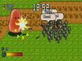 Battles are also streamlined so as to minimize wasted time, as cumbersome commands for attacking, defending or using magic have all been thrown out. Instead, your hero and his enemies merely bash into each other repeatedly until one side's HP is depleted and that character goes flying off-screen. The only time players even need to touch the controller is to use the one HP-restoring item you're allowed to bring along or in case you need to flee from battle. Aside from that, the game pretty much takes care of itself.