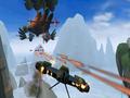 As this game begins, you are re-introduced to the three main characters: Jak, Daxter and Jak's girlfriend Keira. The story is pretty much an all-new tale and stands apart from the rest of the game series, so there's not a whole lot of backstory that you need to be filled in on. Apparently, things aren't going too well on Jak and Daxter's planet, and Eco, the lifeblood of the world, is in short supply. Without Eco, the planet is falling apart and dying at a rapid rate, so Jak, Daxter and Keira have taken it upon themselves to find a new source of energy — or hidden reserves of Eco — to save the world. When the game begins, the trio is heading toward the edge of the world in an effort to find a new energy source. However, they quickly run afoul of the Sky Pirates, who are also eager to find their own source of Eco for money-making purposes, and the trio is quickly shot down. You'll get a quick grasp on the game's basic combat and platforming mechanics, and longtime players of the series will most likely feel at home with Jak's opening arsenal of abilities.